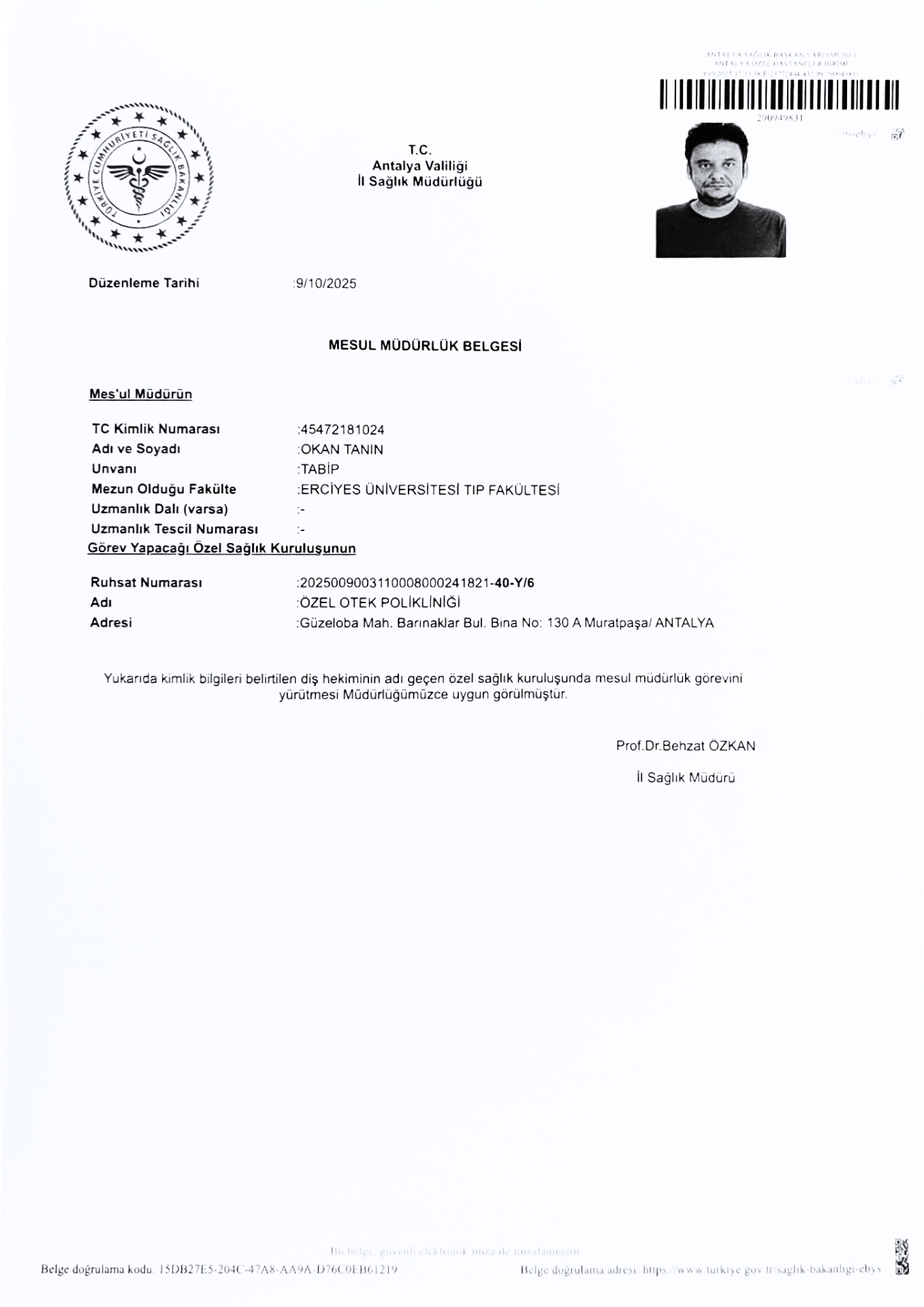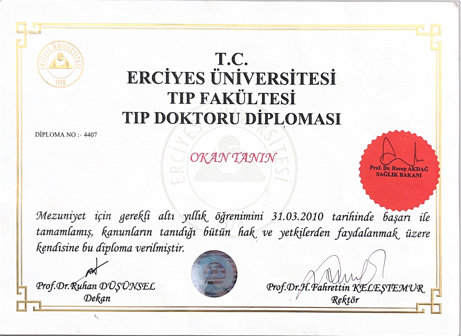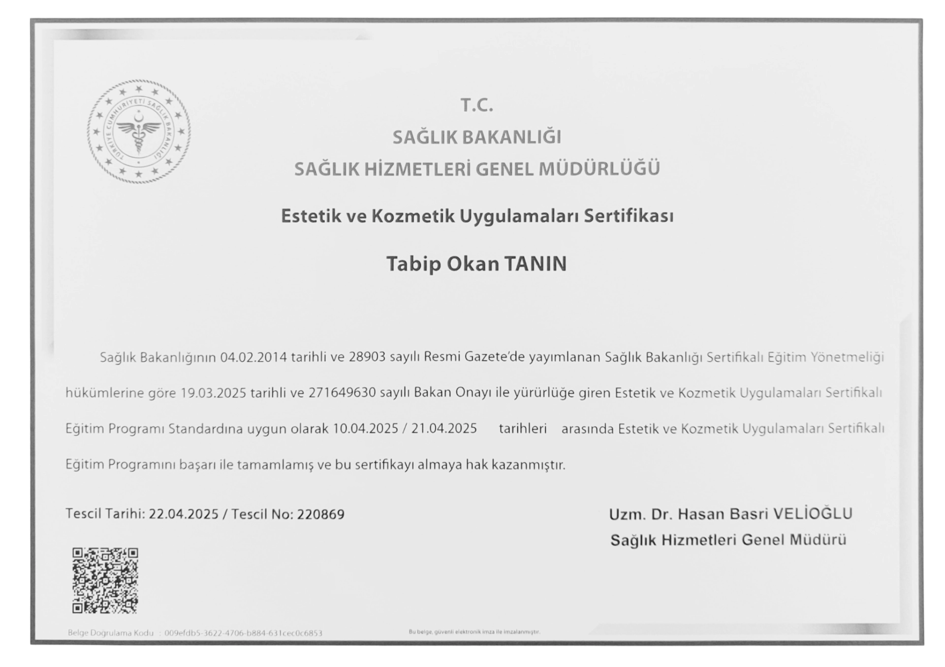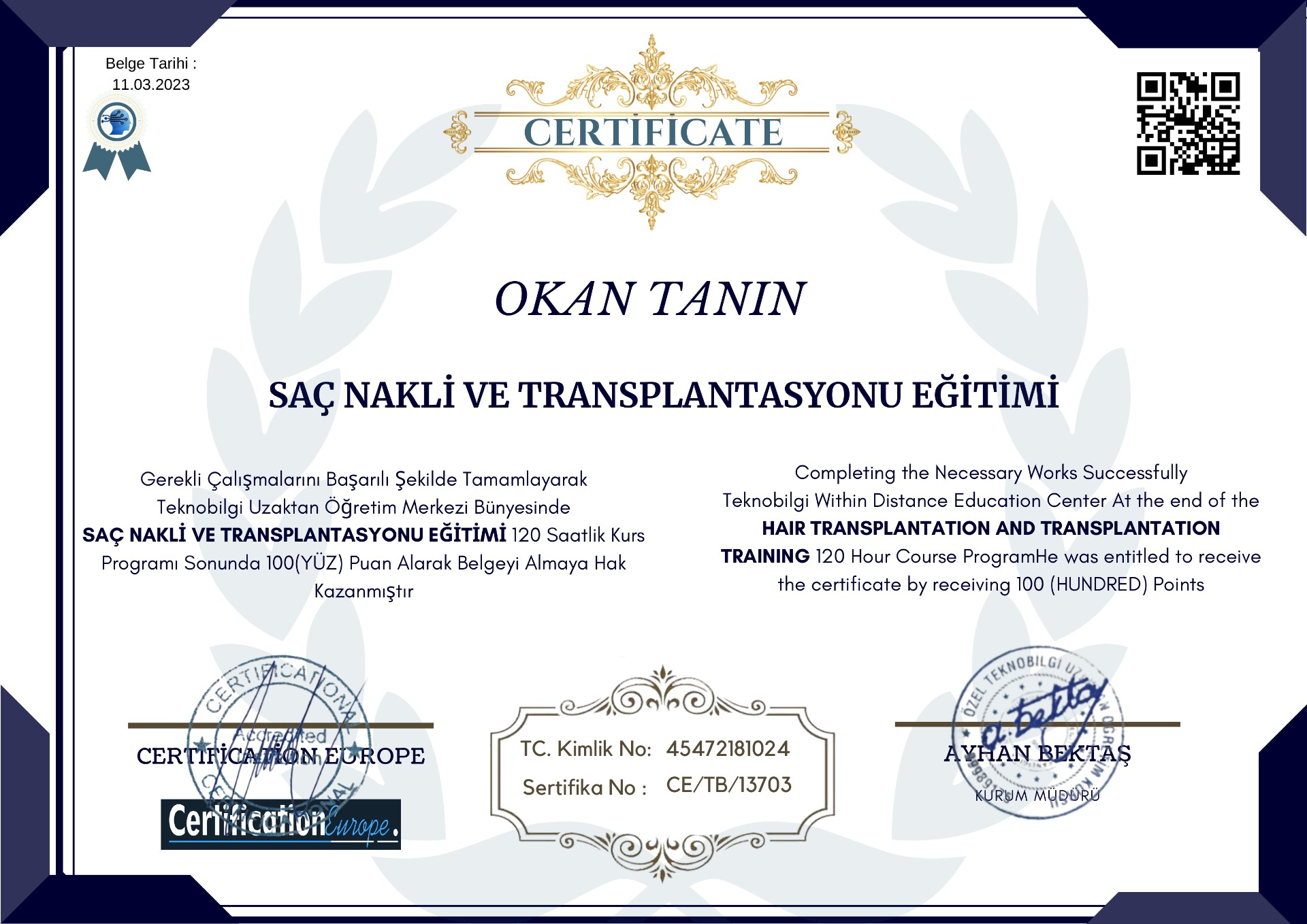 Odborné certifikáty a kvalifikace Dr. Okana Tanina