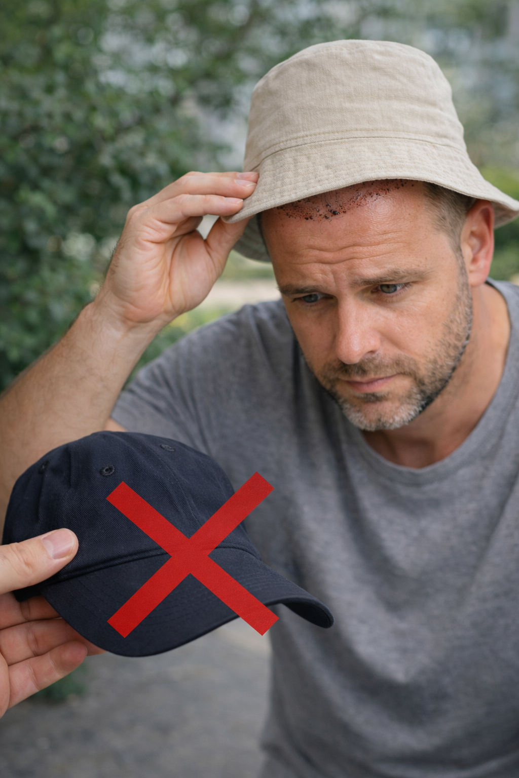 Po przeszczepie włosów niezwykle ważne jest zapewnienie odpowiedniej pielęgnacji przeszczepionych graftów, aby mogły się prawidłowo przyjąć i aby osiągnięte rezultaty były jak najlepsze. Nakrycie głowy może chronić skórę przed słońcem, kurzem czy wiatrem, jednak jeśli nie zostanie odpowiednio dobrane i stosowane, może przynieść więcej szkody niż pożytku.