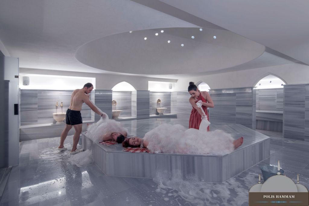 Samotný obřad probíhá na vyhřátém mramorovém lůžku, kde tělo nejprve omývá teplá voda. Následuje peeling pokožky speciální rukavicí kessa a poté ošetření bohatou mýdlovou pěnou, kterou masér vytváří pomocí jemného textilního vaku. Uvolňující masáž spojená s poléváním vodou je skutečným smyslovým zážitkem – intenzivním, očistným a hluboce relaxačním.